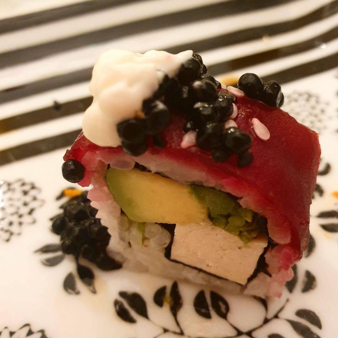רול מעולה ויפה תואר עם סלק ועם "ביצי דגים" טבעוניות