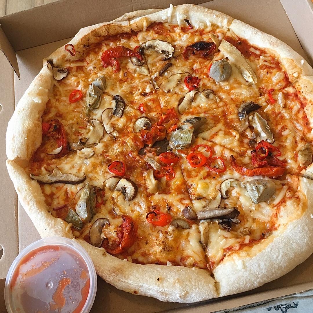 I liked this one even more than the wholemeal base! I opted for red chillies, wild mushrooms, sun blushed tomatoes and artichoke. It was delicious, and I love that it comes with dipping sauce for the crusts #huntsabs