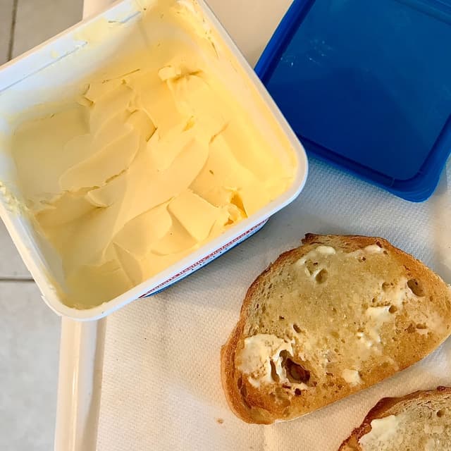 The only vegan butter available during quarantine so I gave it a shot. This definitely tastes more like margarine than real butter. It melts okay as long as you put it on very hot bread or food. It’s good for baking and making cookies with since the margarine flavor is masked. Going to use this container afterwards to make my own palm-oil-free vegan butter! 😊 Price: $4