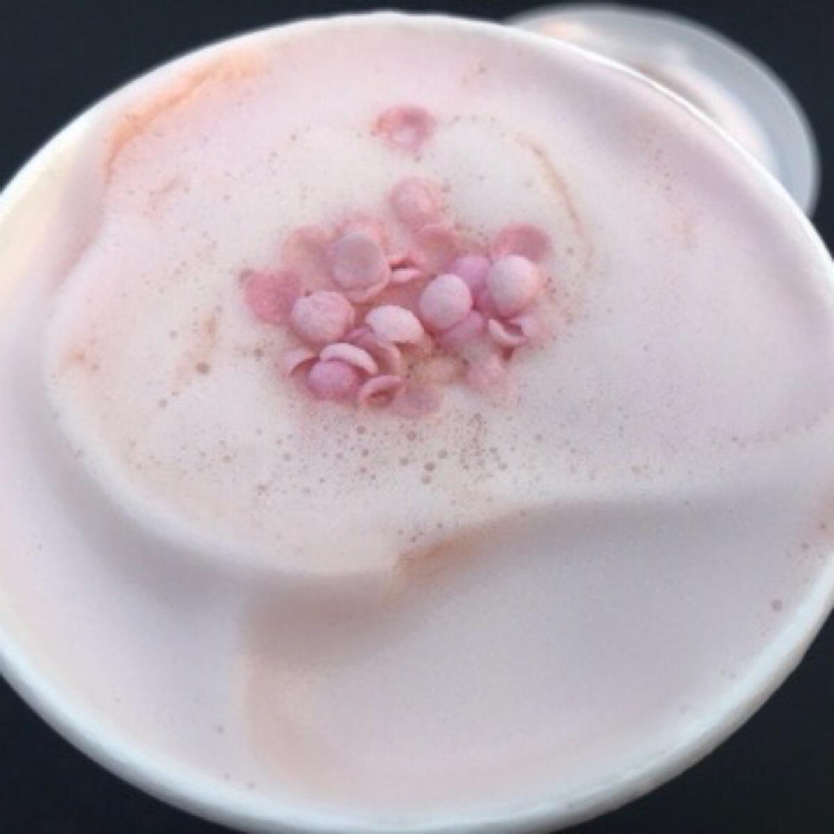 This is a limited edition beverage with pink foam on top and some candy crunch. Definitely looks beautiful, but also taste good.