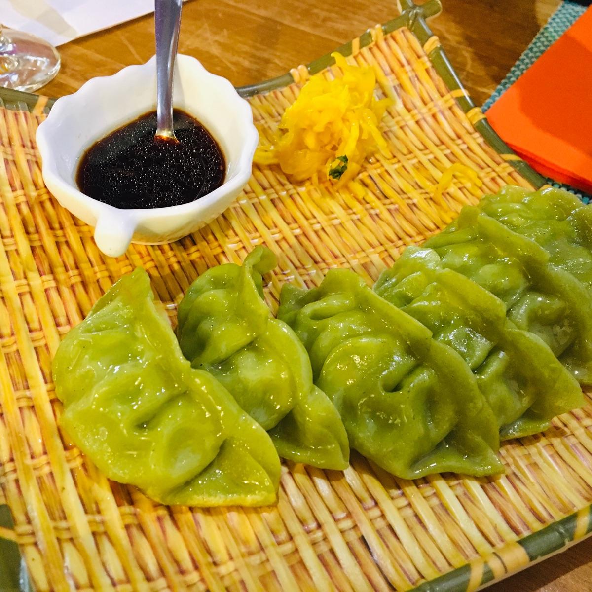Apetitoso entrante que entra solo. Relleno de verduras muy suaves, vienen acompañadas de salsa de soja y una fruta/verdura marinada que no hemos sabido distinguir, pero que estaba muy rica.