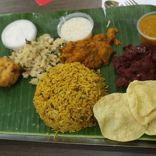 🍛 This Briyani rice set is super yummy with lots of different vegetables. Please skip the raitha which is yoghurt to veganize it