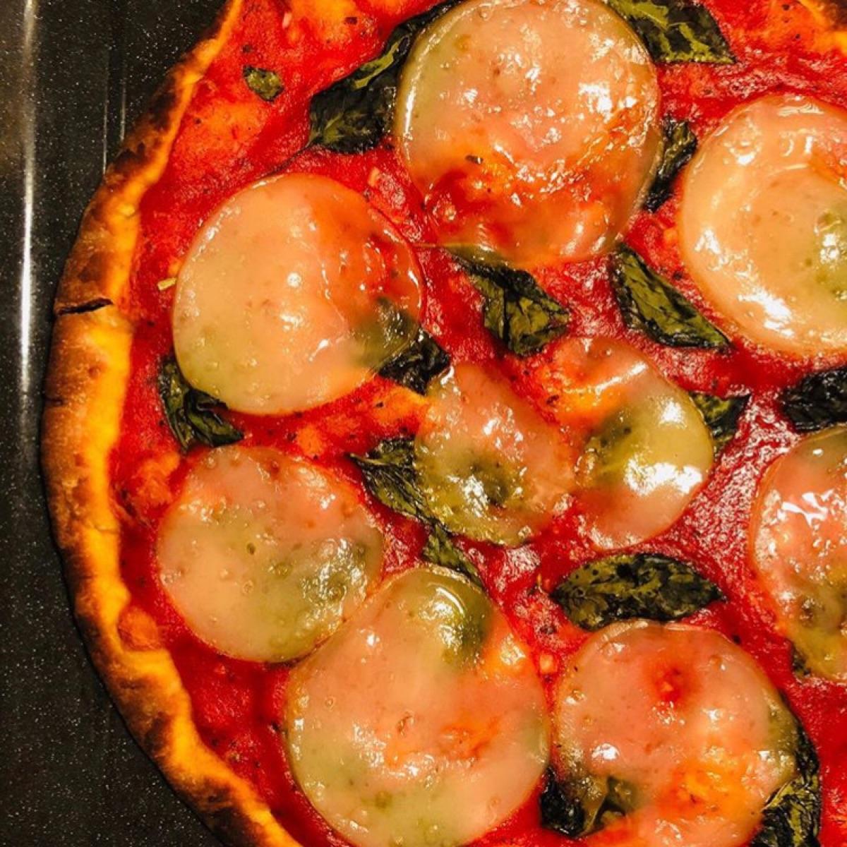 Vegan cheese Gusta has the perfect shape to make a margarita pizza ! Good taste, not my FAV vegan cheese, but I use it in many recipes