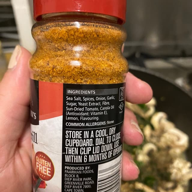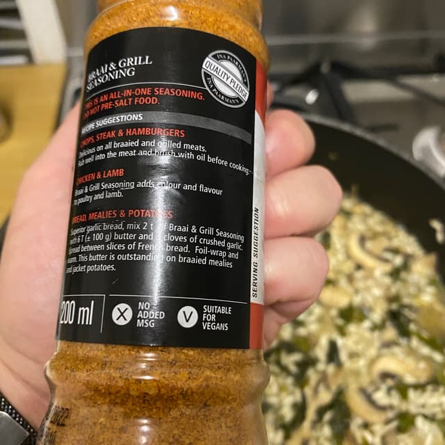 This seasoning is delicious. Clearly marked Vegan friendly. Used it in my risotto. Bought this at Spar but I’ve seen it at Pick n’ pay