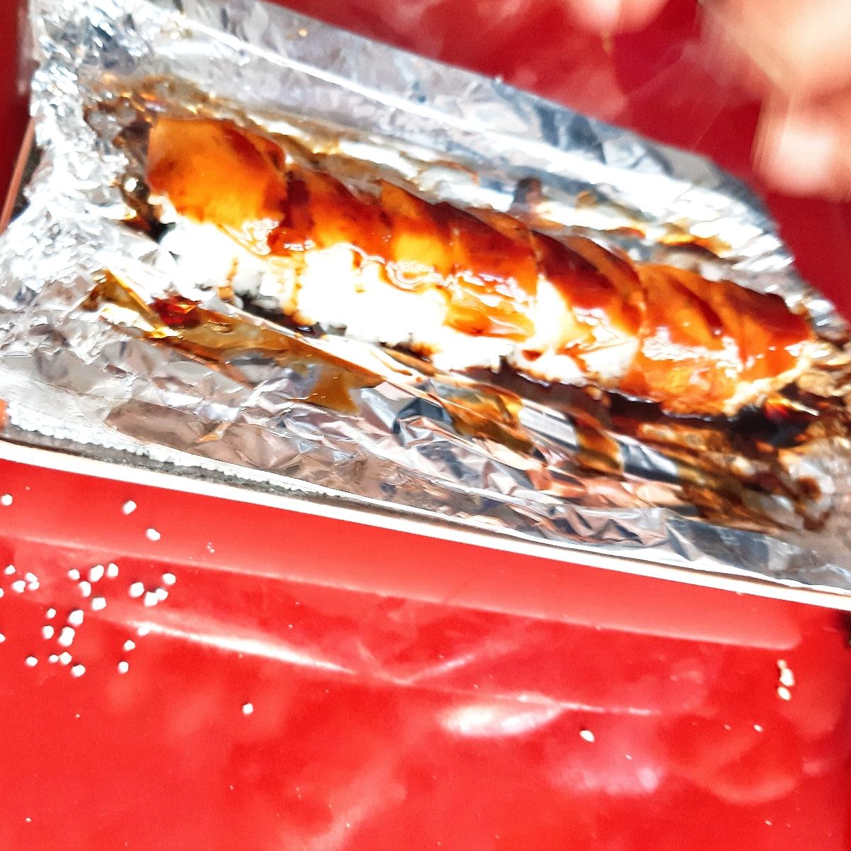 Urimaki de surimi vegetal crujiente, calabaza marinada en teriyaki de algas y veganesa de kimchi. Viene envuelto en papel de aluminio y le prenden fuego, muy curioso. El sabor y la textura espectacular. Para el tamaño que tiene es un poco caro, pero merece la pena probarlo. #vegansushi #veganisnotscary #veganin2020