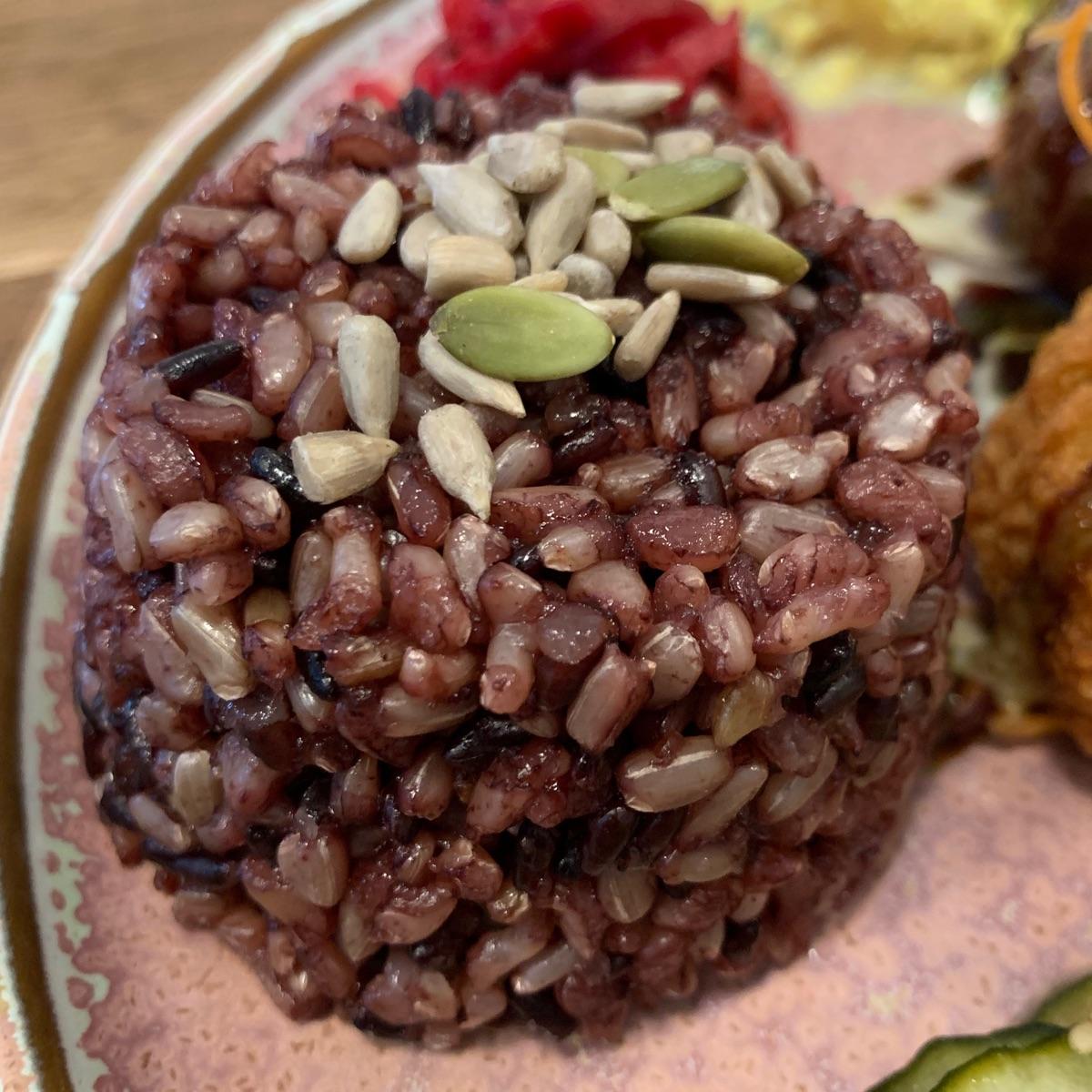 Black and brown rice mix as part of meal set topped with seeds- chewy nutty delicious #rice #healthy #japanese #vegan #veganfood #veganin2020