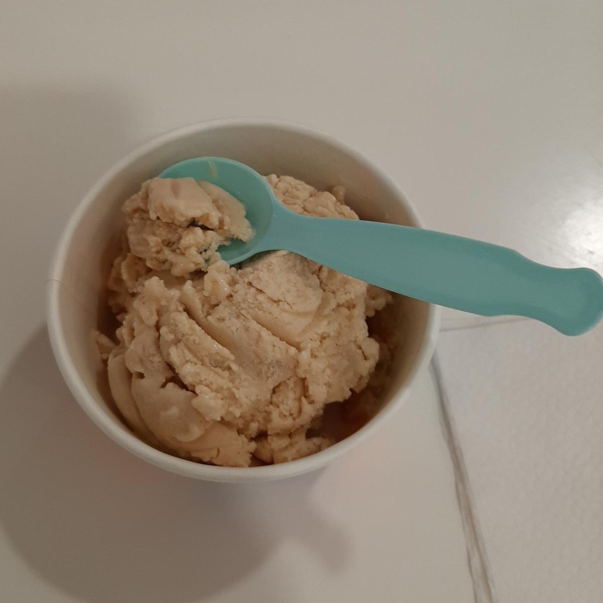 🍨This was so delicious with the peanut giving it a savoury note that counterbalanced the sweetness! 👧 wasn't so convinced but was competing with vegan chocolate icecream 🤷‍♂️.