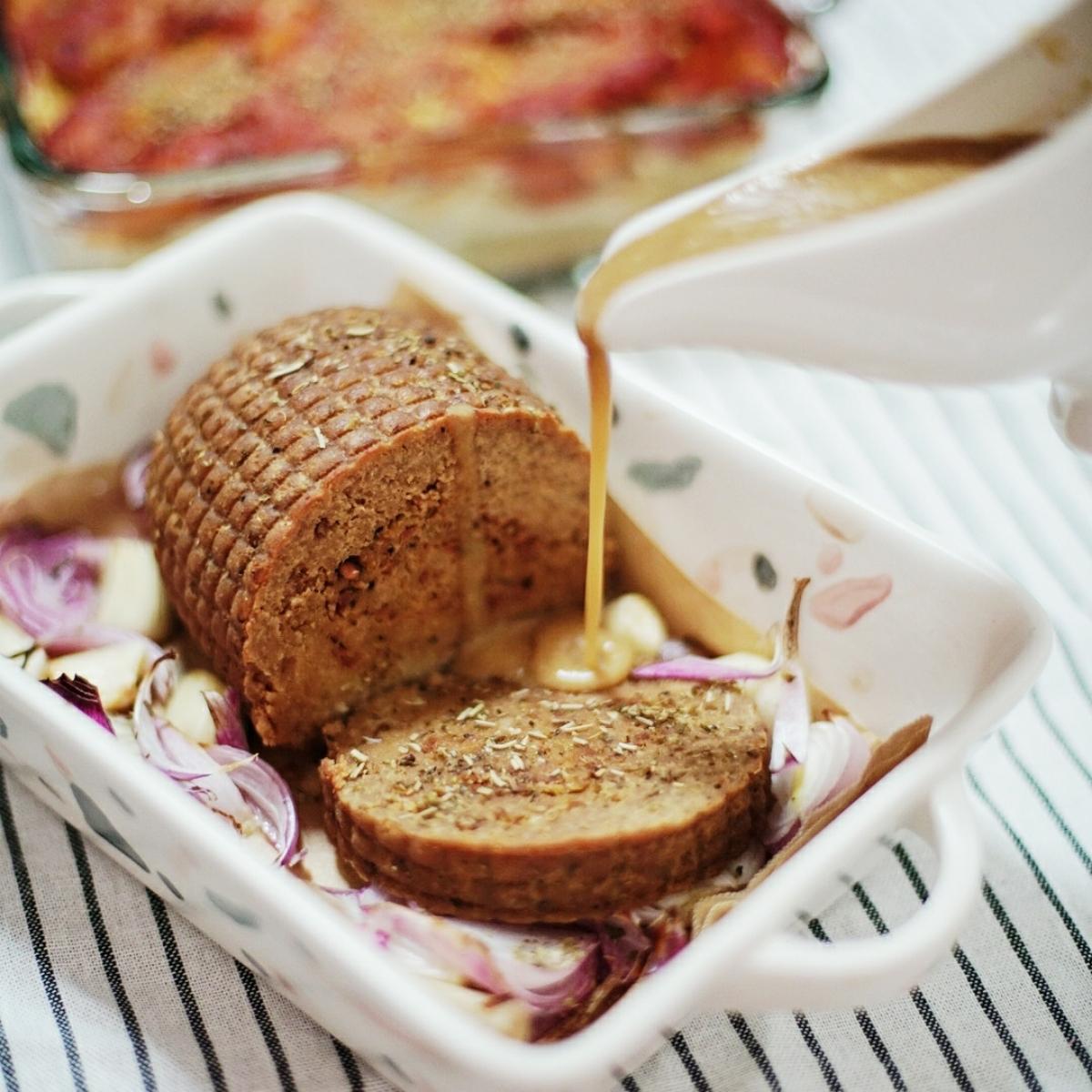 Celebration roast for @veganlion's birthday and the family for early Christmas 🎄 Topped if off with a miso based porcini gravy from scratch. This went perfect with our rigatoni casserole #veganin2020 #veganfeelsgood