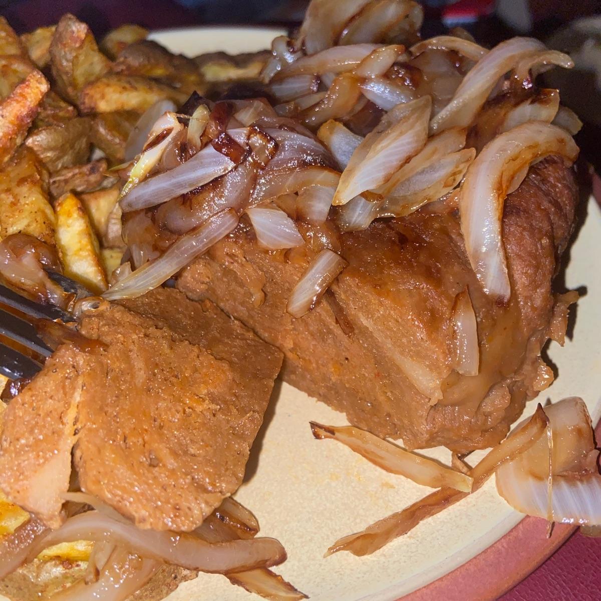 The taste texture smell visuals were spot on. Kale and crew even went as far as to add a “fat cap” traditionally located on the corner of the steak. It even had sections that pulled away leaving a clean edge (much like muscle would do) 10/10 recommend to anyone trying to get a dad or family member to ditch violence!