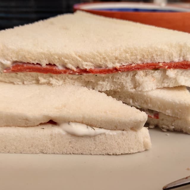 Lo esperaba desde que lo probé hace tres años en el VeggieWord!! Es el producto vegano más logrado que probé junto con la Heura. Sabe, huele y tiene la textura del salmón ahumado. No pude ni pensar en cómo hacerlo! Me hice unos tramezzini con salsa de yogurt de soja, eneldo, un pelín de veganesa y alcaparras.