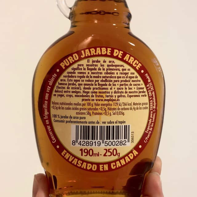 Este es mi segundo sirope de arce favorito. Es un poco más aguado que el de Mary Lee, pero también está muy bueno 🤤