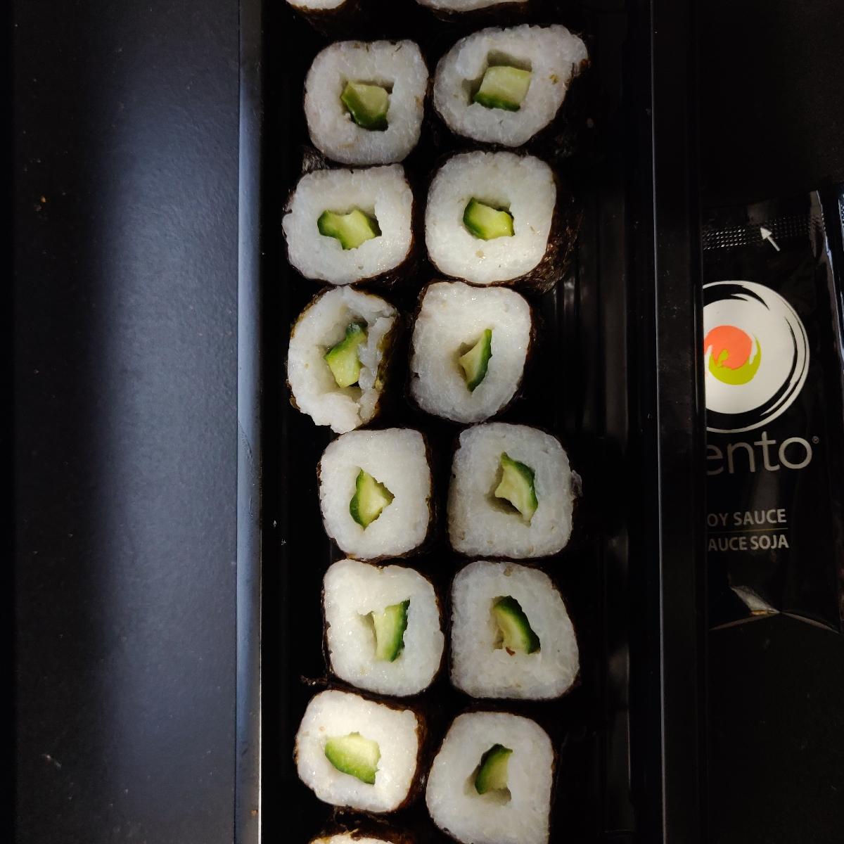 This is the cucumber sushi sold at Real Canadian Superstore, No Frills and Loblaws. It wasn't bad, I was expecting a lot worse for grocery store sushi. Not bad at all! #veganuary