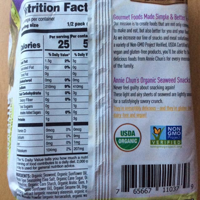 20 sheets of seaweed in a pack. More salt than wasabi & lacks that subtle sweet note I’m now looking for (compared to Wegmans brand). #abillionlove