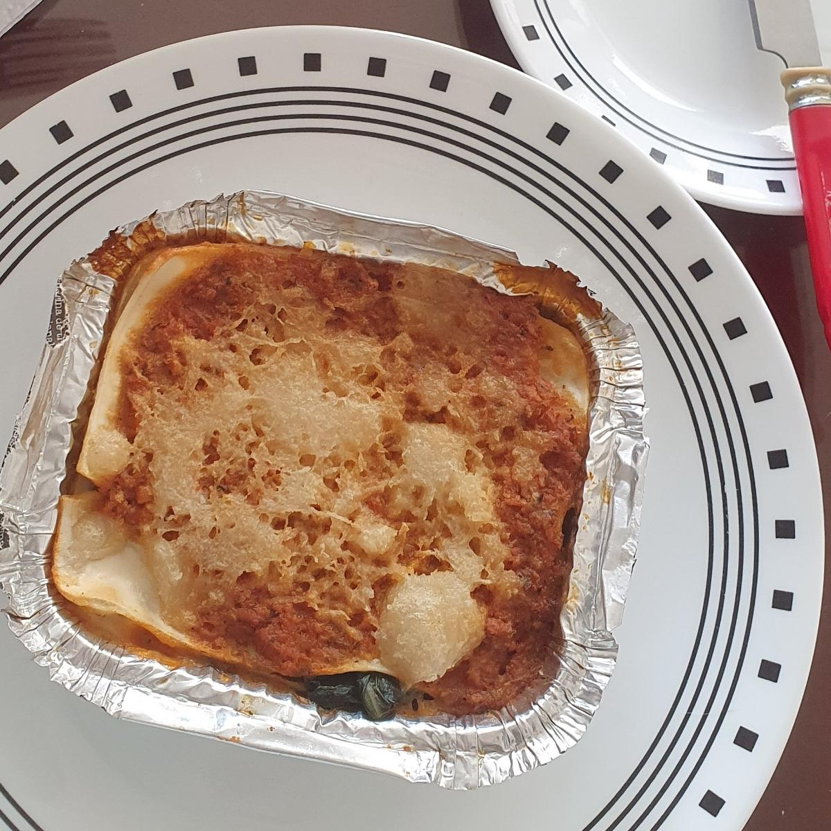 This lasagna has many vegetables, has soy protein and bechamel and napolitano sauce. It is a little bit plain for me, but is nice to have an easy option for dinner than you just need to heat it an enjoy.