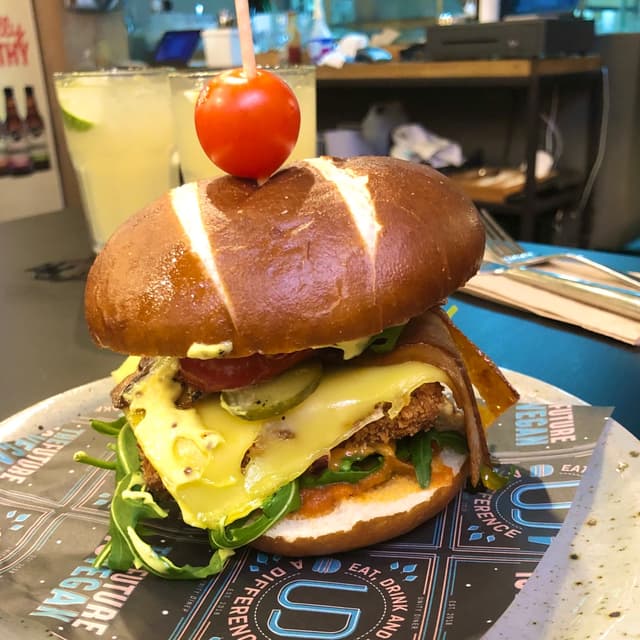 This burger itself was absolutely as incredible as it looked. It consisted of two ‘moving mountains’ patties, vegan bacon and vegan cheese, all served inside a delicious vegan brioche bun! Burger goals for sure! 🍔 💯
