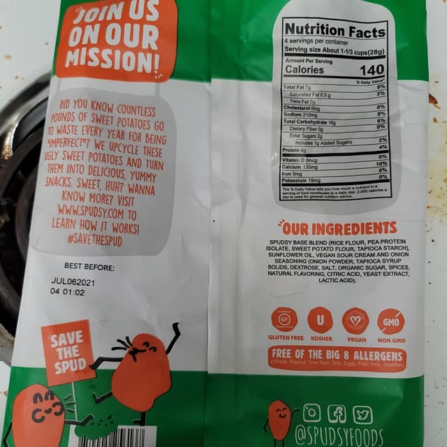 Introducing our new Vegan Sour Cream and Onion Puffs! Made from upcycled imperfect sweet potatoes, these crispy and delicious puffs offer a flavor that reminds you of your favorite sour cream and onion chips. These puffs are not only vegan but also much healthier for you, making them a great snack option for both vegans and non-vegans. With a crunchy texture and a savory taste, these puffs are sure to satisfy your cravings. Try them out and see why they're getting such great reviews from customers.