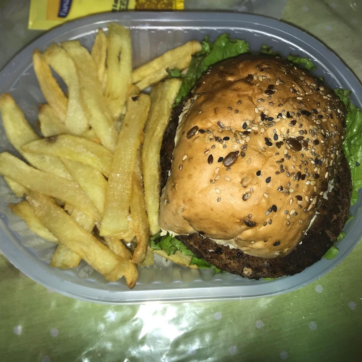 Agradezco que haya opciones en Aguas Verdes!! 1966 es el bar del centro, tienen esta hamburguesa que confirmé que es vegana porque me dijeron que la masa no tiene manteca por ig. Es una porción abundante, comí dos veces en el día jaja. Es rica y no es tan seca, pero obviamente si tenés algún aderezo mejor. Traía tomate y lechuga y un montón de semillas en el pan. También me ofrecieron la opción de empanadas de capresse y de berenjena sin queso, ya que según ellos la masa no tiene manteca.