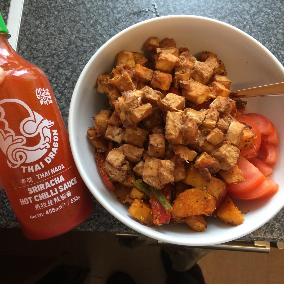 This is a nice, spicy sriracha. I added it to soy sauce and garlic powder and tossed cubbed tofu in the mixture. I then coated it with corn starch and threw it in the oven for about 50 minutes at gas mark 7. I think I added too much corn starch as it did crisp the tofu but also left the bottom slightly goopy. I’m no good at using corn starch 🤣