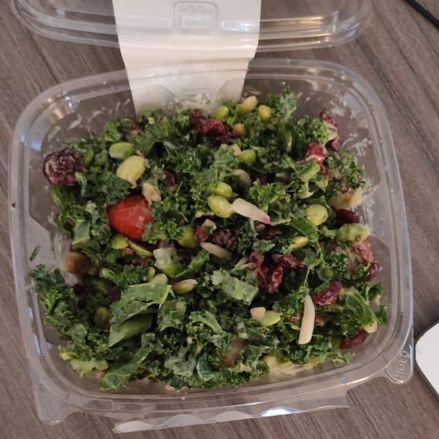 It's a nice combo of sweet cranberries, juicy tomatoes, soft edamame and crunchy kale.