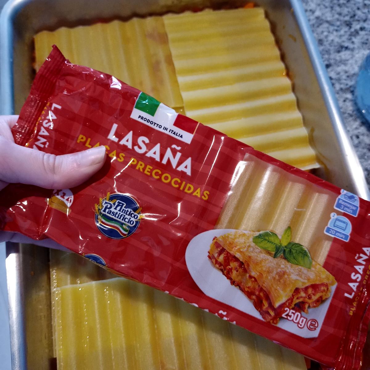 Placas precocidas para preparar lasaña. Hay que remojarlas 2-3 minutos en agua calentita antes de montar la lasaña, para que no queden duras. Son algo más grandes que las de otras marcas y el ondulado ayuda a colocarlas. Yo suelo prepararla con boloñesa de soja o de lentejas y queda muy bien. Buena relación calidad-precio.