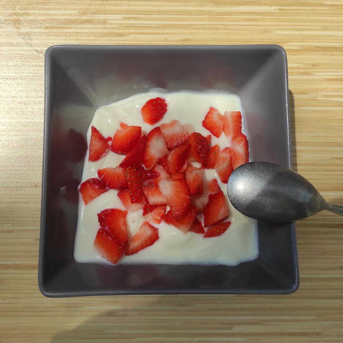 El único postre veganizable del menú era el yogurt. Me dijeron que tenían coulis, fresas, plátano, etc. Yo me lo hubiera currado un pelín más. Mis desayunos con yogurt son mas vistosos. Pero bueno, ahora sé que no pediré más menú porque no me sale a cuenta. Solo el plato vegan del día y listo.