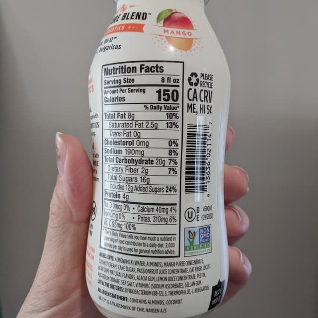 Very tasty, good mango flavor. Definitely taste a slight almond/coconut flavor at the very end, but not in a bad way. 16G of sugar for one 8 oz bottle, so more of a treat than a daily breakfast!
