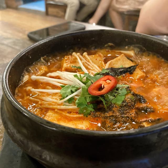 The soup was rich, spicy and tasted a little seafood-like. Enjoyed this authentic-tasting soondubu jjigae 😋