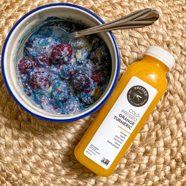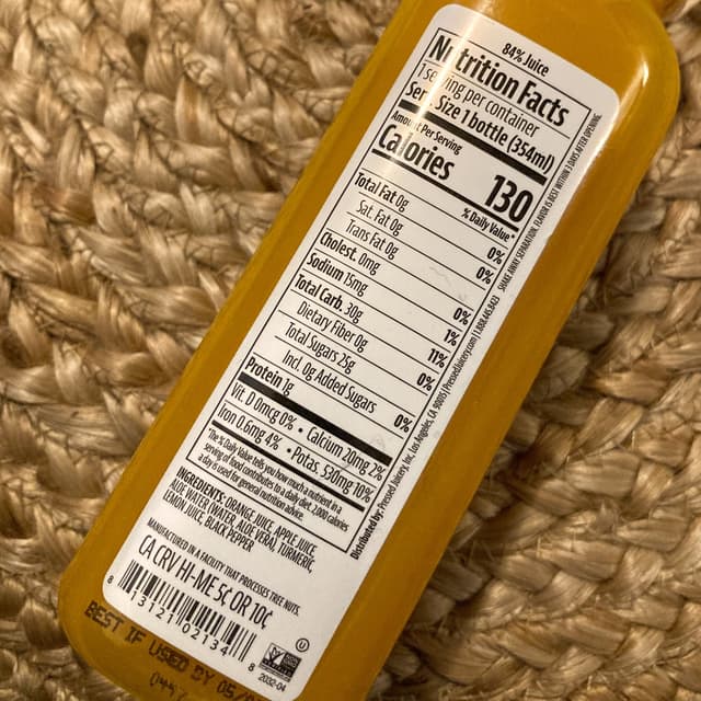 Really lovely and hydrating. A perfect start to the day alongside blue majik chia pudding. Clean/Healthy ingredients (Orange Juice, Apple Juice, Aloe Water, Turmeric, Lemon Juice & Black Pepper.) Non-GMO Certified. This was a splurge as it was on the pricey side! #abillionturns3