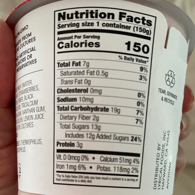 Kite Hill's Strawberry Almond Milk Yogurt - Original is a plant-based yogurt that offers a creamy and smooth texture. Made with simple ingredients, this yogurt is a wholesome addition to your daily diet. The strawberry flavor adds a delightful taste to the yogurt, making it an irresistible treat. Whether you have dietary restrictions or prefer a plant-based lifestyle, this yogurt is a delicious option that provides essential nutrients. Try it today and experience the unique taste of Kite Hill's Strawberry Almond Milk Yogurt - Original.