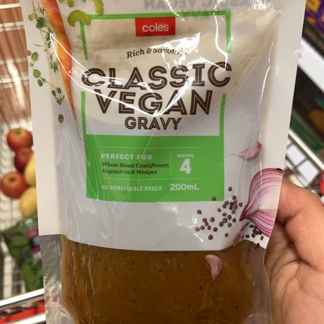 Coles just came out with this super convenient microwaveable vegan gravy! We had it on smashed potato, with a bit of extra pepper, and it’s chef kissed.