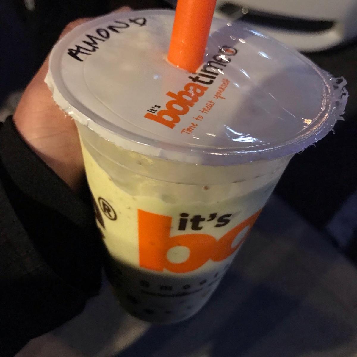 Mi bobba favorita es de taro pero esta vez la pedi de pistache con leche de almendra esta buena pero mi fav sigue siendo la de taro