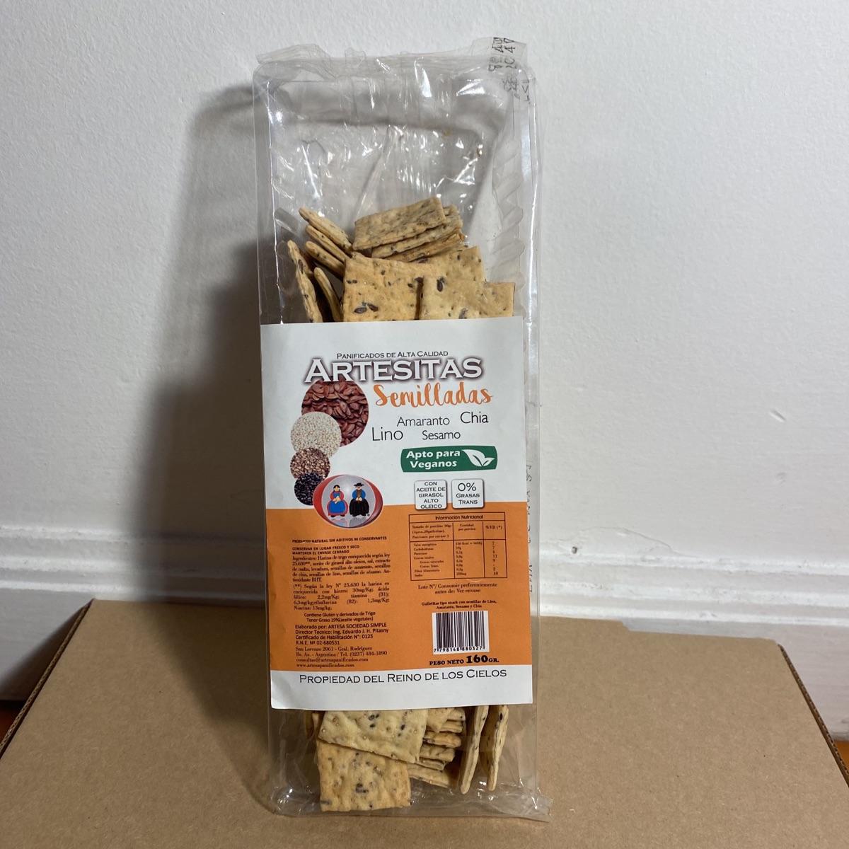 Snack salado crocante, con claro sabor a semillas, ideal para comer con untables