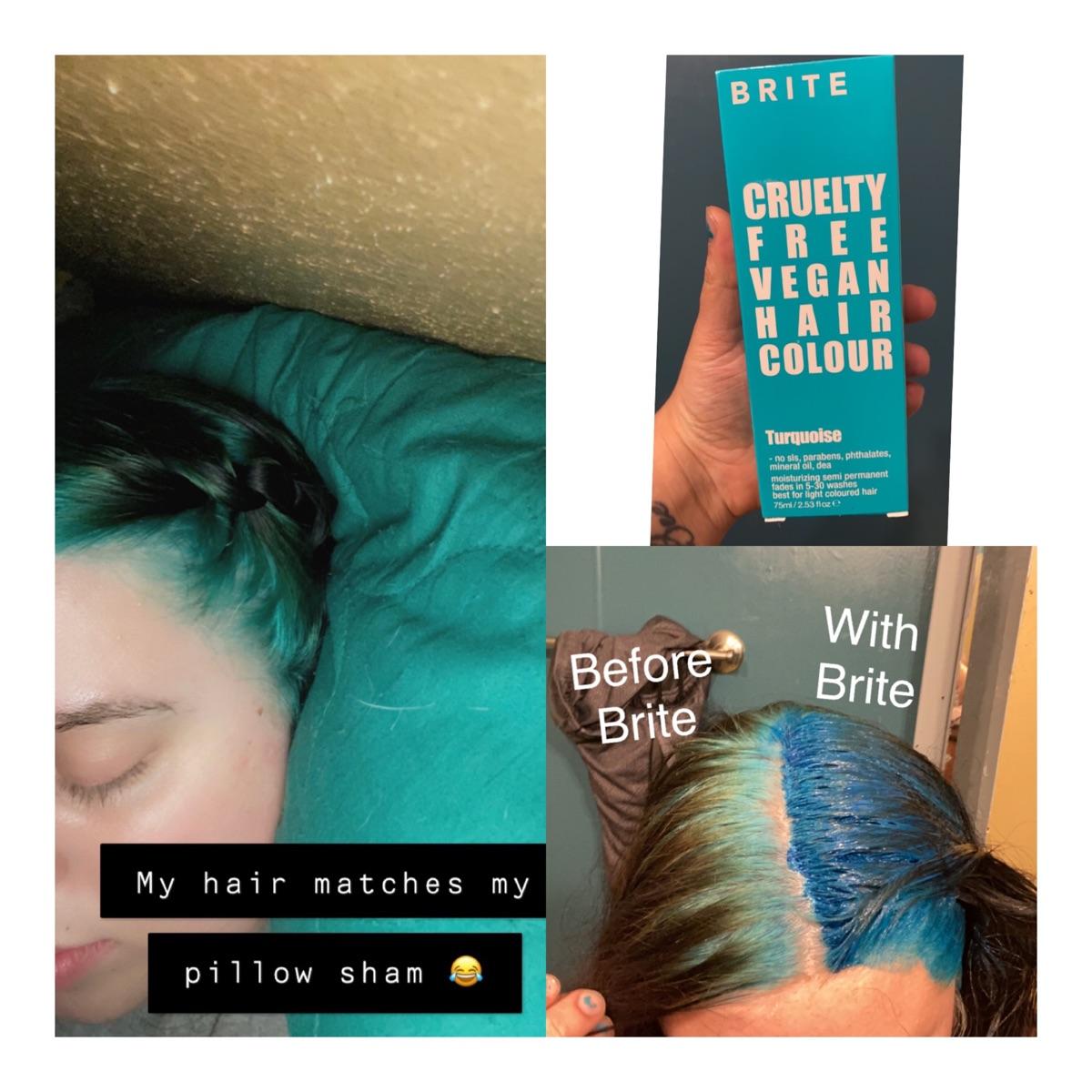 I’m officially changing over to this brand for coloring my roots! So, last Thursday, I used Splat (I didn’t use the bleach that came with it though and used a different lightener because I’ve heard awful things about the Splat bleach ruining people’s hair) thinking it would last a long time as I’d used it before and it lasted forever. Well, after rinsing the color off in the shower, it left my hair yellow and patchy and it just looked pathetic. So, skip to yesterday (a week later) and I went to Walmart and saw they had this and in Turquoise like I wanted (I got teal in Splat) and holy pigment! I left this in my hair for 3 hours and I’m glad I did because the color payoff is amazing! It says to do it for 10 minutes first as a patch test but the longer you leave it on your hair, the longer the color will last in your hair. It’s so so pretty and I’m super happy with the result! They were $5.98 each which I think is a great price for how nice of quality the product is. It’s vegan and cruelty free which is what I go for 🐰🚫💉 I’ll definitely be using this again because I absolutely LOVE THIS!!!