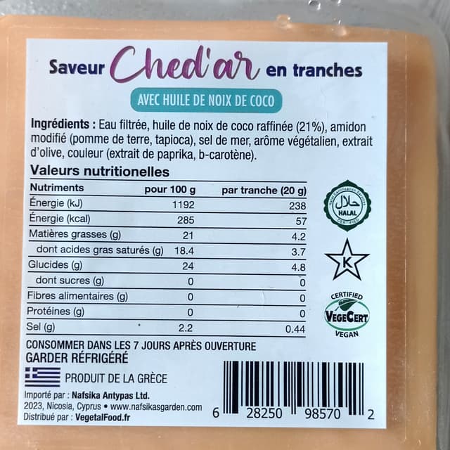 🇬🇧 These plant-based cheddar slices are delicious! Very good, cold in a sandwich and even better hot in a sandwich or in a burger, they melt well, are creamy and taste very good! (Végétal & Vous Lille) #groingroin