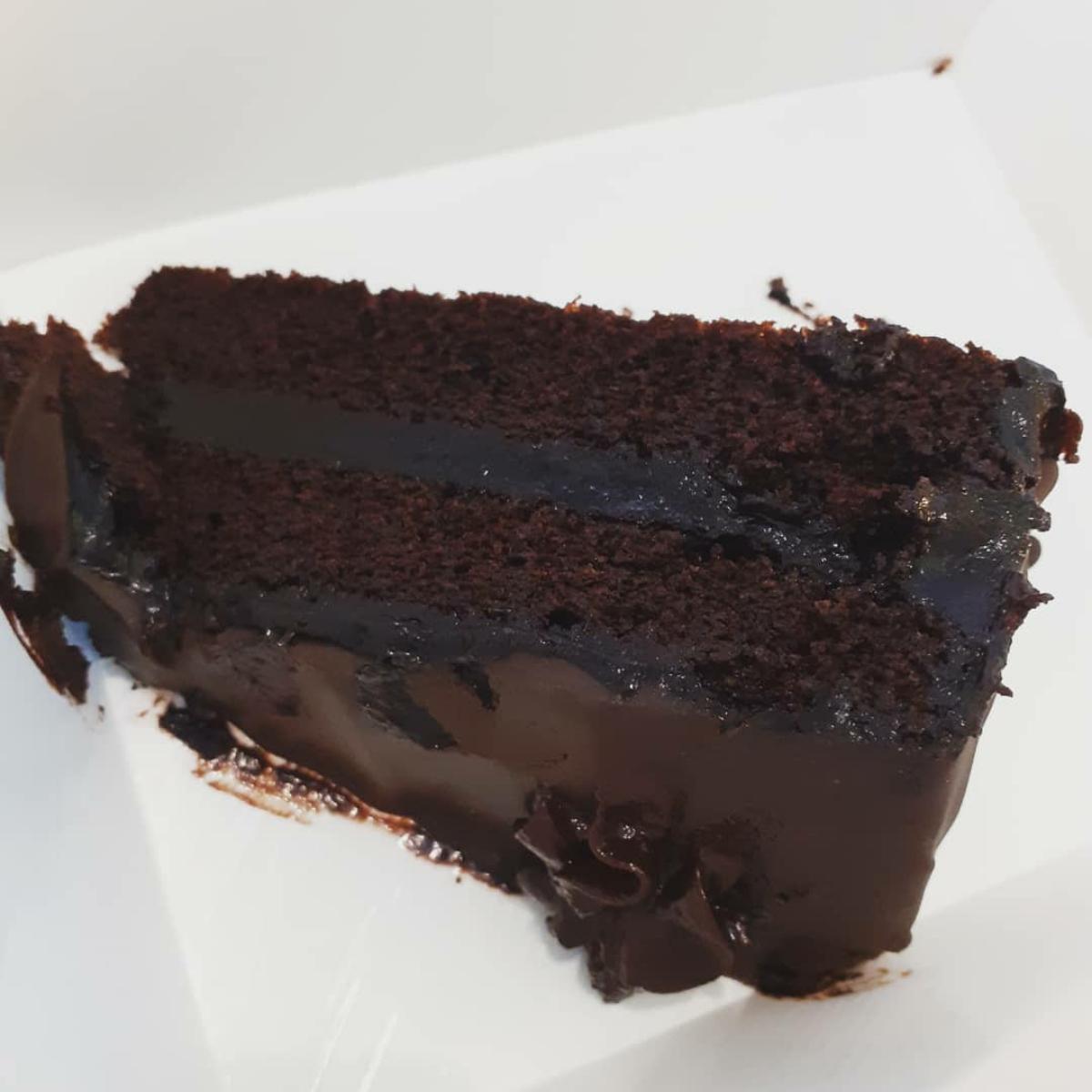 Este trozo de tarta de chocolate es el postre ,también gratis, que Fredoom Cakes repartio por el Día del Cacao (ayer). Espectacular