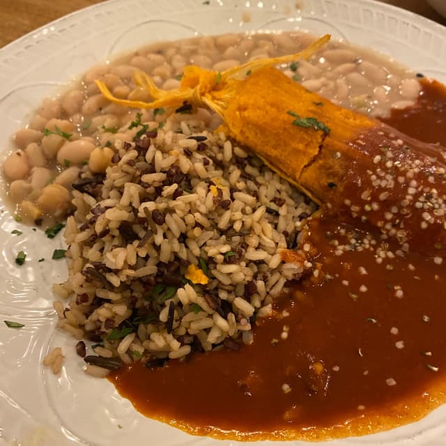 Tasted bland. The sauce was bitter and the tamale was very small. The beans had a weird spice (I’m Indian/Korean & even I didn’t like it)