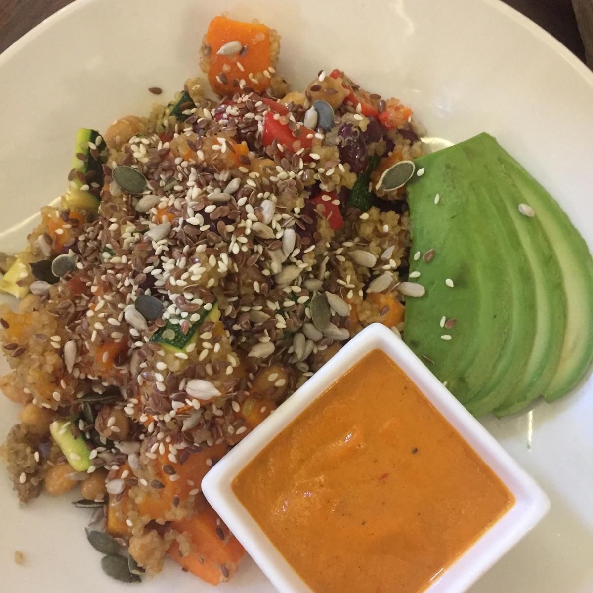 This was sooo good and very healthy and so so so tasty! A little bit spicy but some extra hummus on the side did the trick! Super friendly staff and manager! Great!