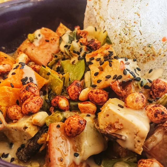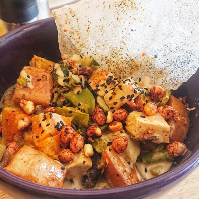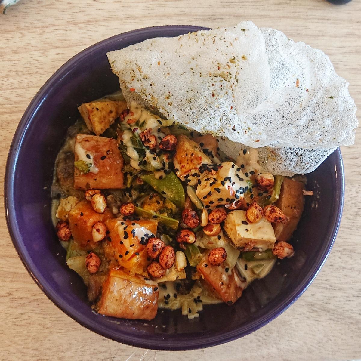 This was really good in terms of the variety of veggies you're eating in one sitting. I would maybe recommend that they rather serve the noodles and the veggies with the sauce separately, just because the noodles were super soggy, but maybe that's the point and other people like it, I'm not sure 😅 it was a little bit spicy, but not too bad. If you're someone who can't handle spice at all then rather try something else, but if you like a little bit of heat in your food you'll enjoy this. I think it's a little bit pricey considering it wasn't a huge bowl and it's noodles and veggies essentially, but was still tasty and I would have it again.