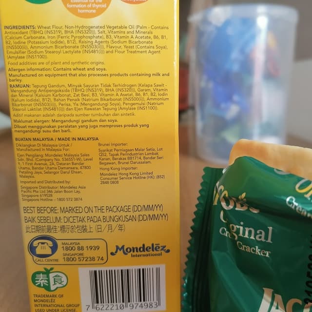 Finally found this cream cracker without any butter or milk, from the supermarket after browsing through all the cream cracker brands from the shelf.