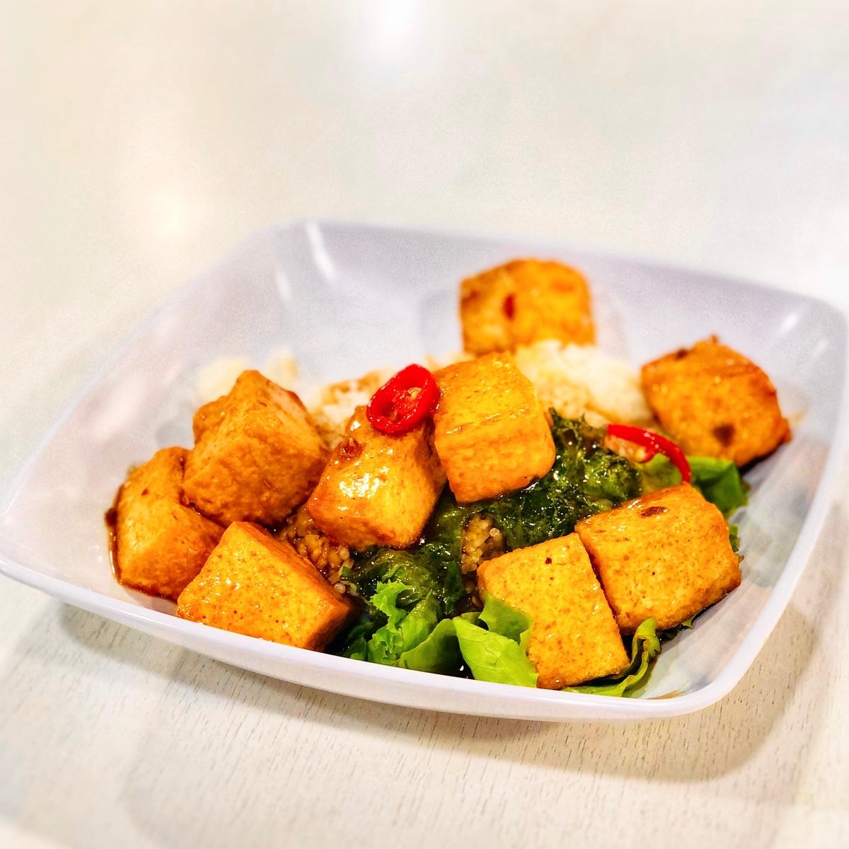 First lunch in school in eons 😆 Feat. basil tofu rice ($3) w a tasty savoury sauce that isn’t too basil-in-your-face & reminds me of tze char fare! 🍛 #nuseats