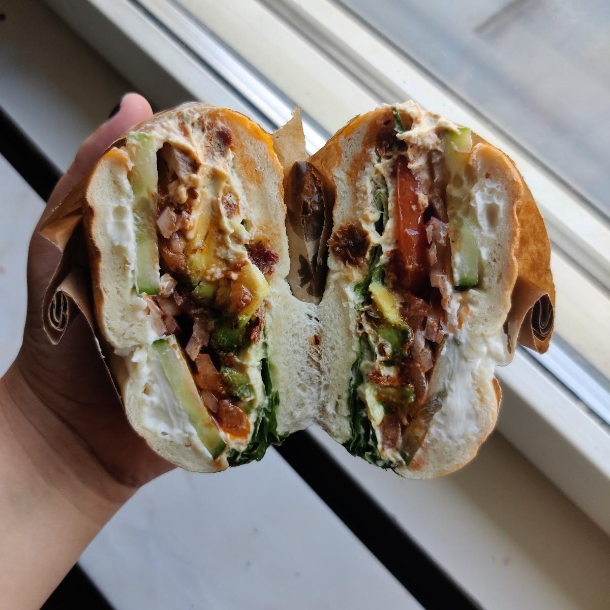 Best bagels I've had! Filled with hummus, cream cheese etc. Great service. Good prices.