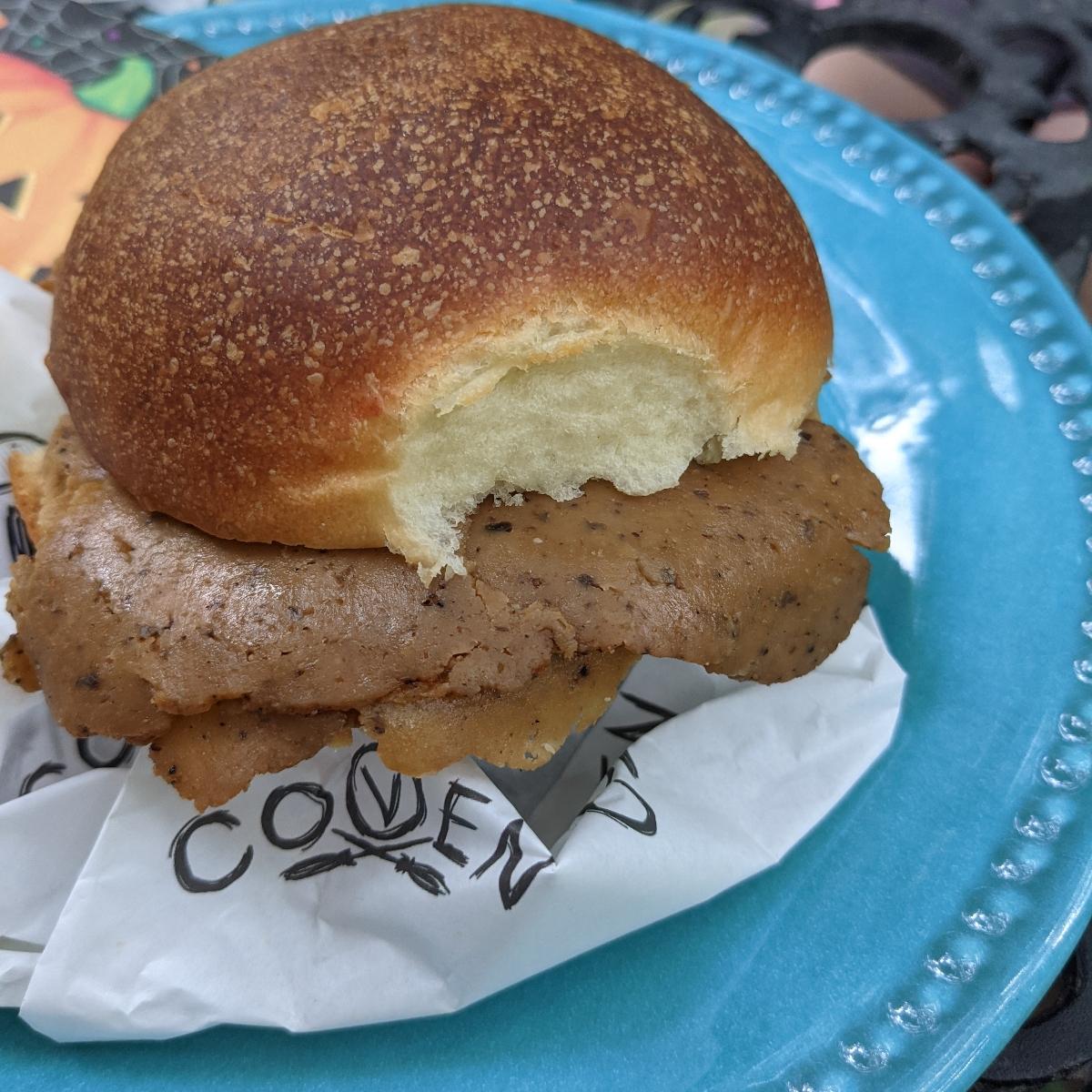 Tasty deli faux meat. The bun is yummy as heck and reminds you of the eggwash buns from times of old. My favorite is still the assorted though.