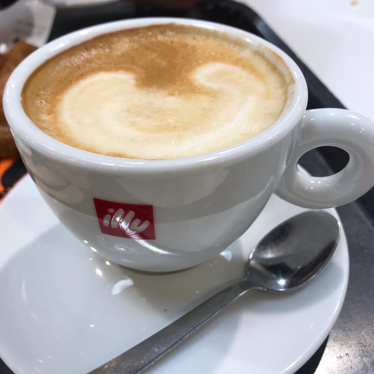 A good cappuccino with plant-based milk. The milk is well foamed and the drink tastes good.