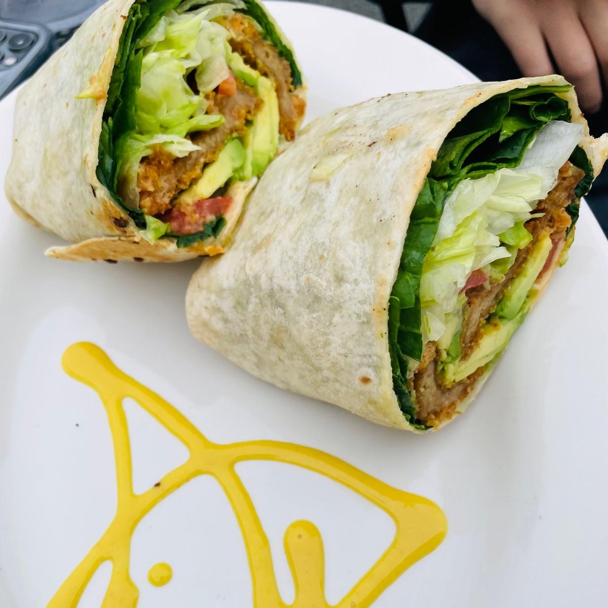 Their bestselling house made vegan fried chik’n in a wrap! Perfect with added avocado. 🥑