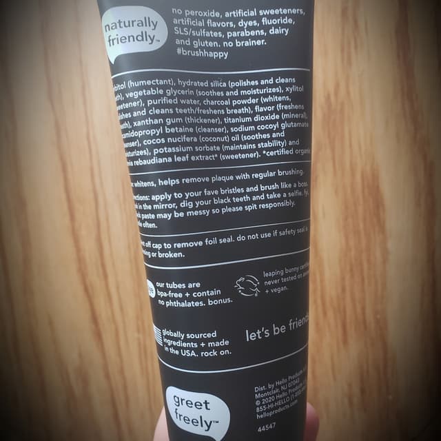Black teeth are a bit unusual to get used to (my spouse still has yet to), however I recommend trying this brand solely because of how well it cleans, freshes, and removes plaque without harmful chemicals.