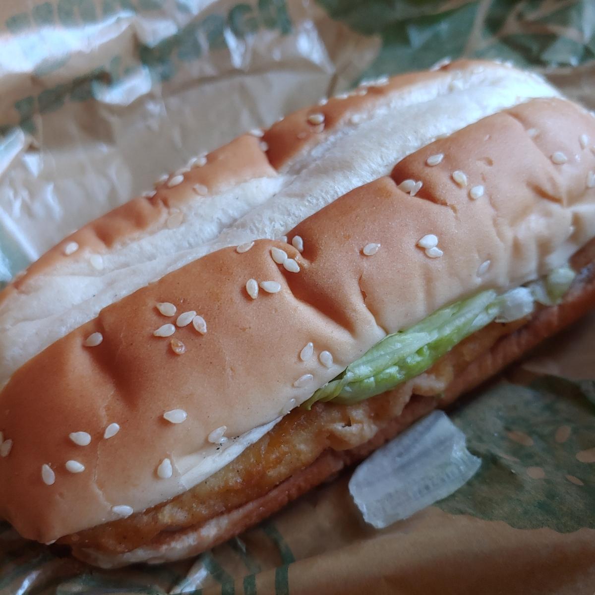 This is an okay roll sandwich thing. It has a good patty but was quite dry and they totally forgot the two vegan sauces that we did order