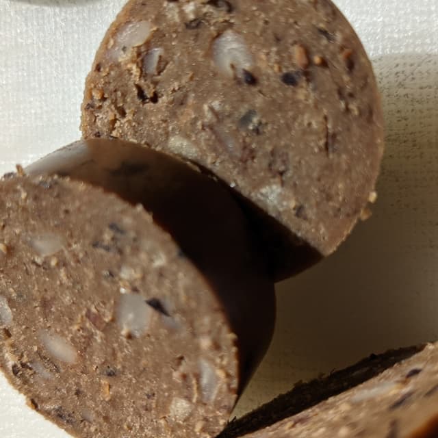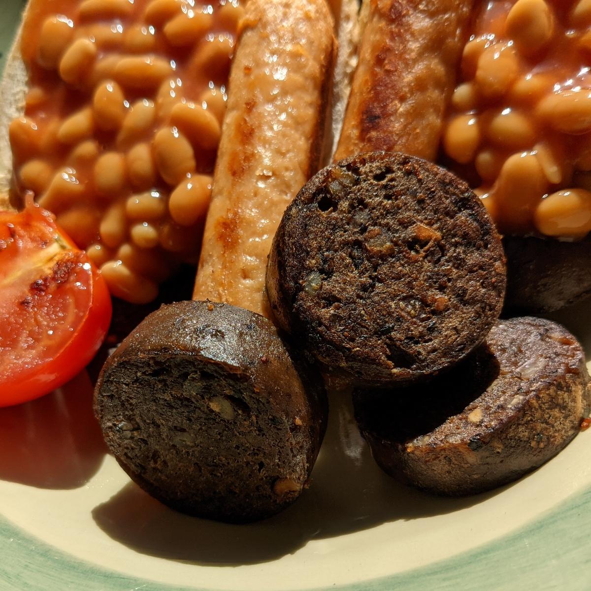 I've no idea what "real" black pudding should taste like, so can't comment on how authentic this is, but it tastes nice - reminiscent of the vegan haggis which Waitrose sells. Makes a change, but probably don't need a whole packet between two people - would have been better saving some for another meal.