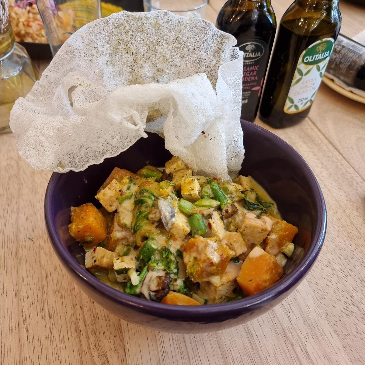 Mulan's noodles were very tasty, but it felt like it was striving to be a green-curry-like dish but it didn't quite reach it. It also needed a bit more seasoning to really get the flavours out of it. The fried rice paper had delicious spice on it, and the tofu was generous atleast.