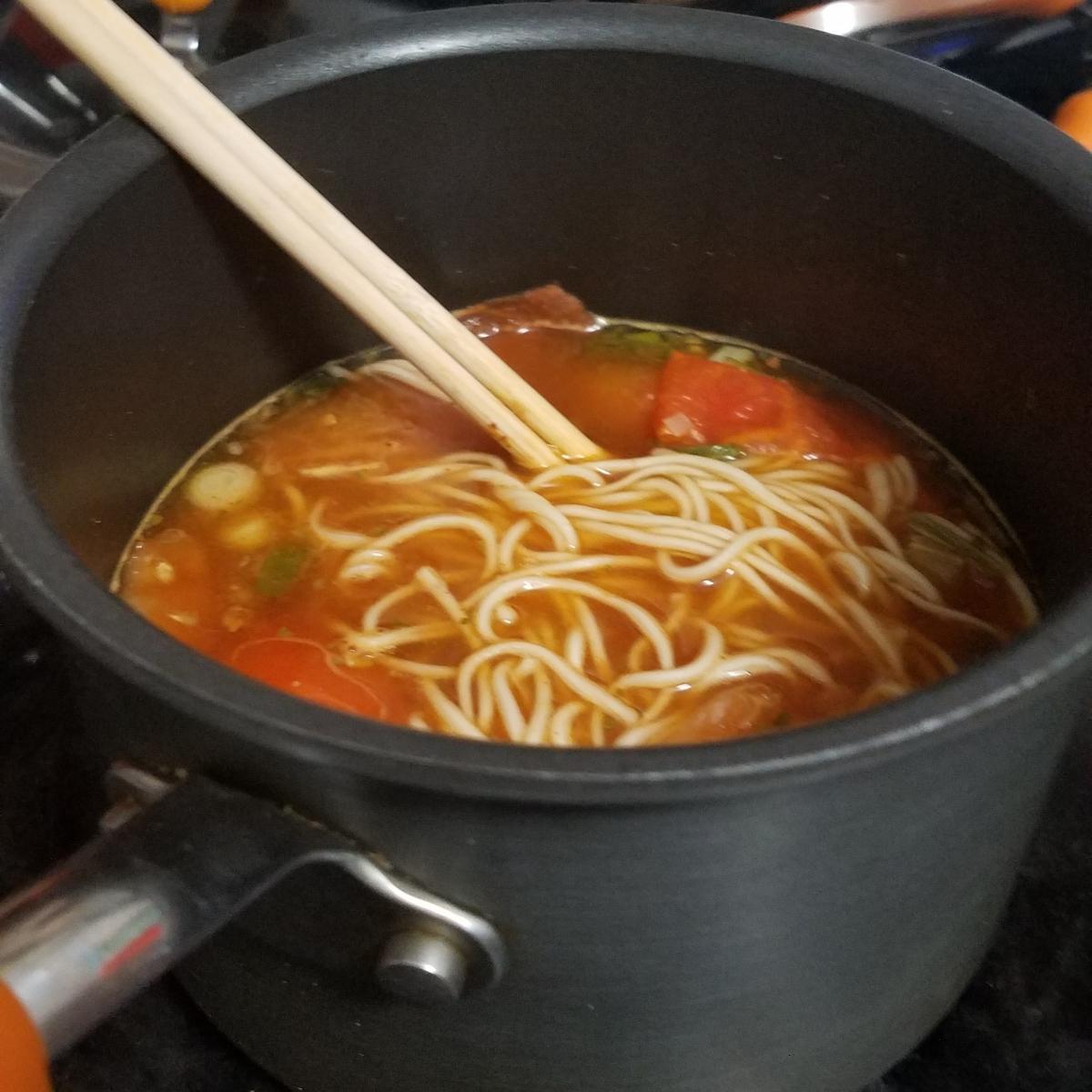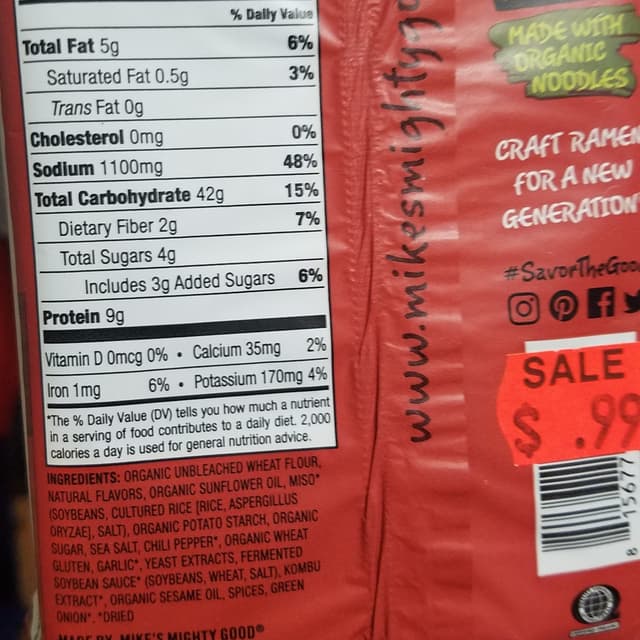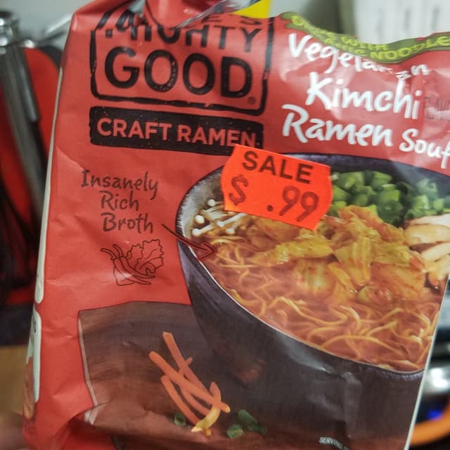 My ramen tasted bomb! But I added a tomato and some leftover vegetable broth with green onions! Picture cut off but its 250 calories. Something that would maybe be a minor issue is that the noodles feel/taste like spaghetti noodles! I bought this a while ago so though I got it for $1 on sale, I'm not sure the full price! #veganisnotscary