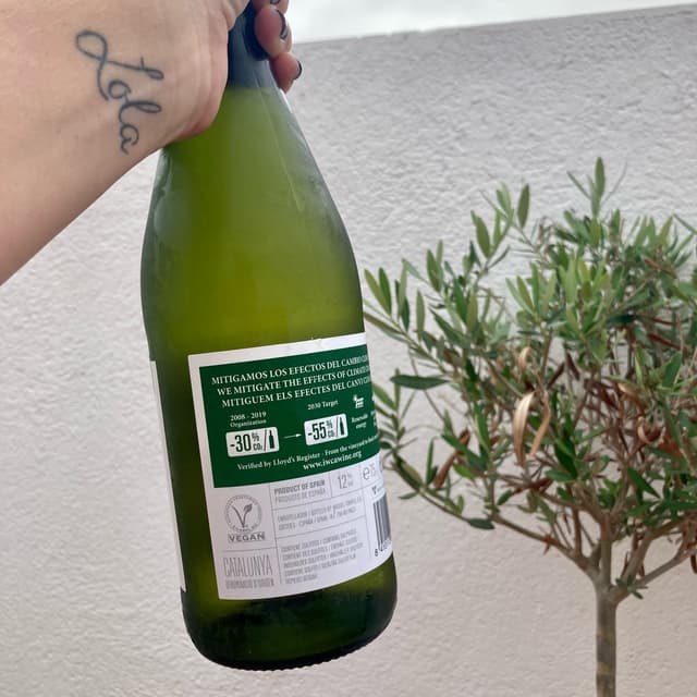 Really good wine! Always happy to find vegan wines around 🥳 pic featuring my tiny olive tree!